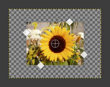 Dopo aver selezionato lo strumento di trasformazione unificata nel pannello strumenti, fare clic sulla finestra immagine. Diversi elementi appariranno sulla finestra immagine: