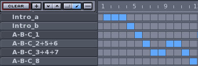 Looking at this scheme we can see that some pattern repeats, so we'll use this symbols in Hydrogen's Song Editor: